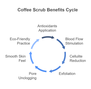 Exfoliating with a coffee scrub removes dead skin cells, leaving the skin smoother and more radiant. Coffee grounds are naturally abrasive, making them excellent for exfoliation. Regularly using a coffee scrub can help maintain healthy skin by ensuring dead cells don’t accumulate on the skin’s surface.
