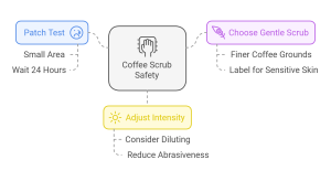 It’s always a good idea to do a patch test before using the scrub on sensitive areas. Due to its abrasive nature, coffee scrubs can sometimes irritate the skin. Start with a small, inconspicuous area and wait 24 hours. If there’s no adverse reaction, you can proceed.